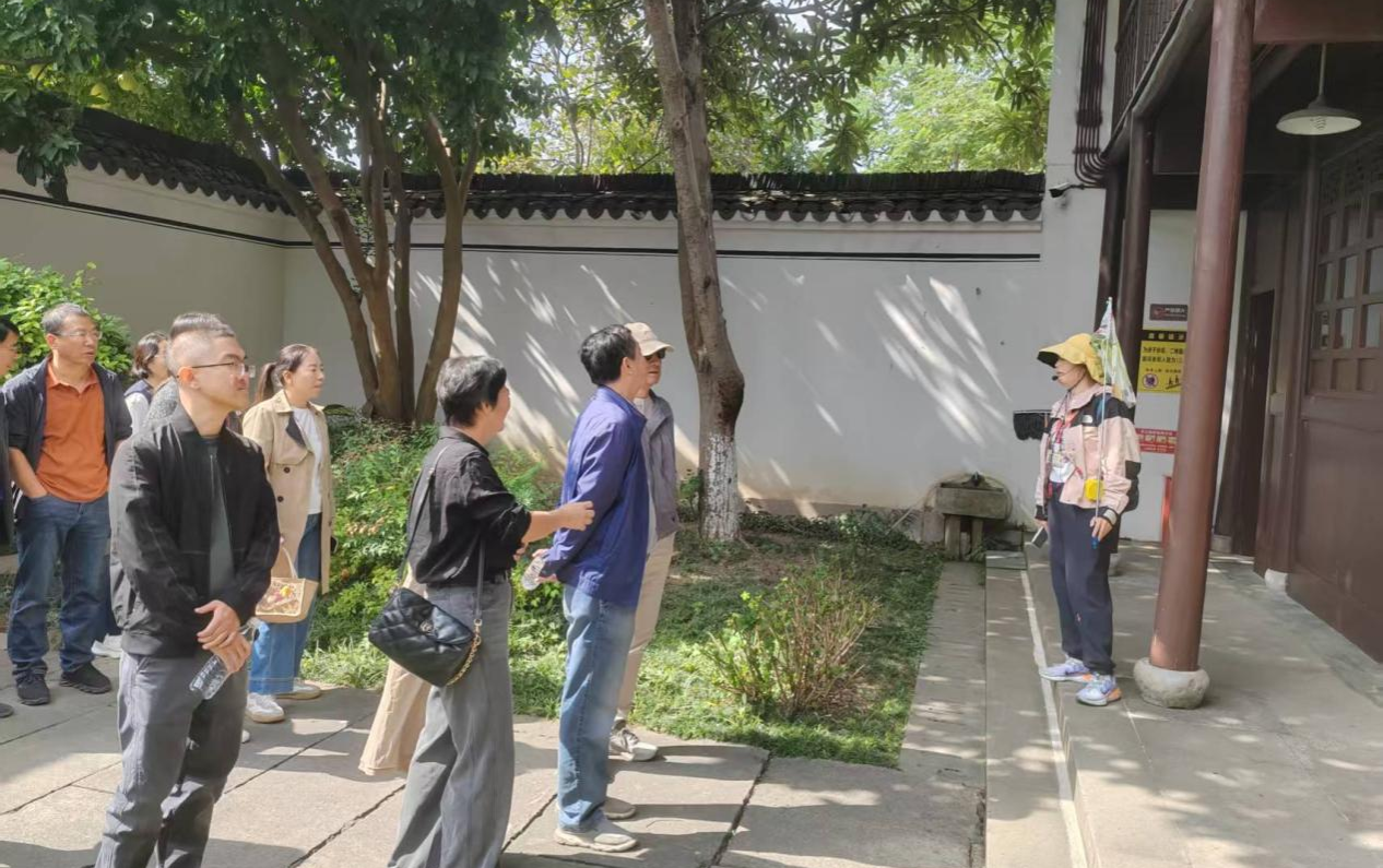 活动首站来到郁达夫故居。这座坐落于富阳老城区的传统民居,青瓦白墙间留存着文学大师的生活印记。教师们在讲解员引导下,参观了郁达夫生平陈列室,透过泛黄的手稿、旧物与珍贵照片,深入了解其在文学创作与抗日救亡运动中的坚定身影。大家驻足于“达夫书屋”,品读先生笔下“家在严陵滩下住,秦时风物晋山川”的人文情怀。
