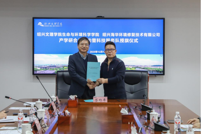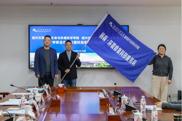 12月10日下午,生命与环境科学学院与绍兴海华环境修复技术有限公司举行产学研合作签约暨科技服务队授旗仪式。副校长陈均土,绍兴海华环境修复技术有限公司总经理张小根出席活动,海华环境有限公司高管厉莺、朱莹莹、丁烨蔚,校地方合作处处长陈剑波,生命与环境科学学院院长胡保卫、副院长任岗及相关老师参加仪式。仪式由学院党委书记夏婷主持。