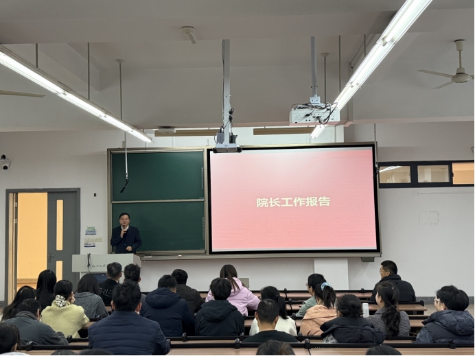 院长胡保卫作学院年度工作报告和财务工作报告,全面回顾和总结了2025年学院在党建思政、学科建设、人才培养、科学研究、社会服务等方面取得的成绩,分析了存在的问题和不足,报告财务收支情况,并对2026年重点工作任务进行了部署。