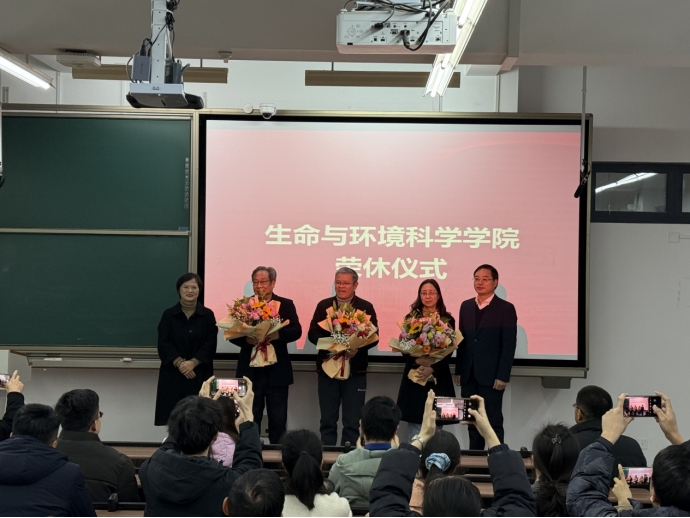 会上举行了荣休仪式,向本年度退休的张建龙、祝尧荣、戴晓波三位老师献上鲜花,感谢他们数十年在教育事业中的坚守与付出,也希望学院的年轻教师能汲取传承的力量。