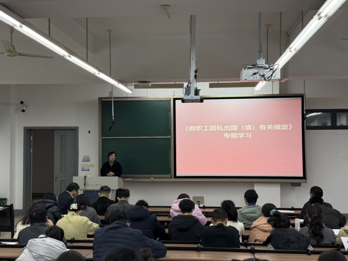 夏婷作工会工作报告,从思想政治、权益保障、文体活动、自身建设教工等方面总结了2025年学院工会工作情况,同时对年度工会财务报告进行了汇报。会议开展了师德师风专题警示教育,并组织学习了学校《教职工因私出国(境)有关规定》,引导全体教师恪守职业道德、筑牢思想防线,严守纪律规矩。