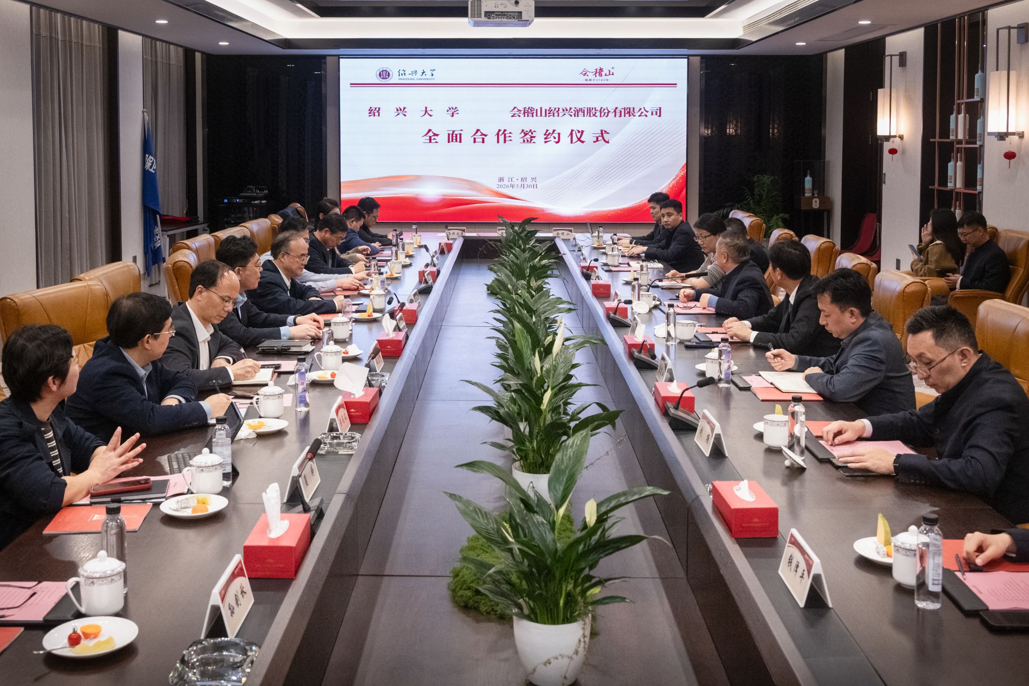 3月30日下午,绍兴大学与会稽山绍兴酒股份有限公司全面合作签约仪式在会稽山黄酒小镇举行。学校党委书记崔凤军、党委副书记黄坚,会稽山绍兴酒股份有限公司董事长方朝阳、总经理唐桂江等出席仪式。仪式由会稽山绍兴酒股份有限公司党委书记、副董事长傅祖康主持。