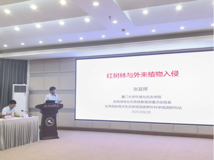 张宜辉教授作题为“红树林与外来植物入侵”的报告,系统阐述了我国南方红树林与互花米草入侵的生态互作机制及其防控策略。